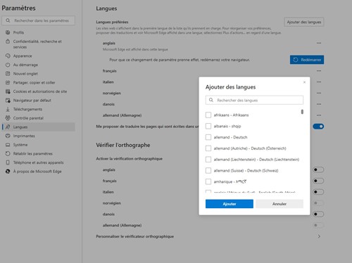 3) Dans le navigateur « ajouter des langues », sélectionnez la langue de votre choix.