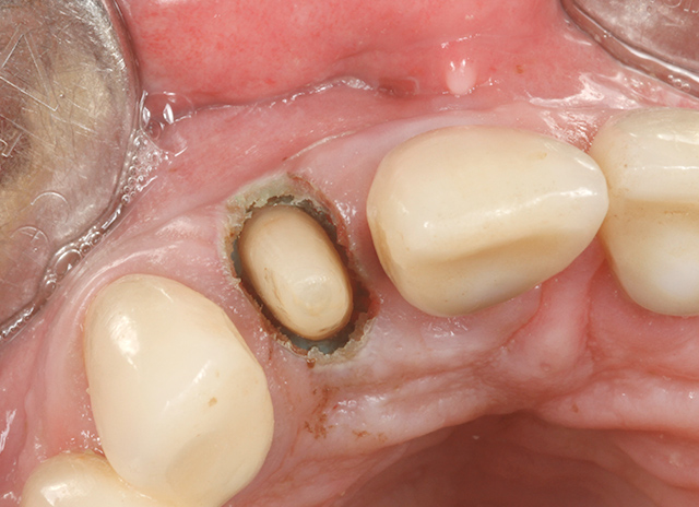 Right after cementation of a zirconia crown, 1 week after using XO Odontosurge.